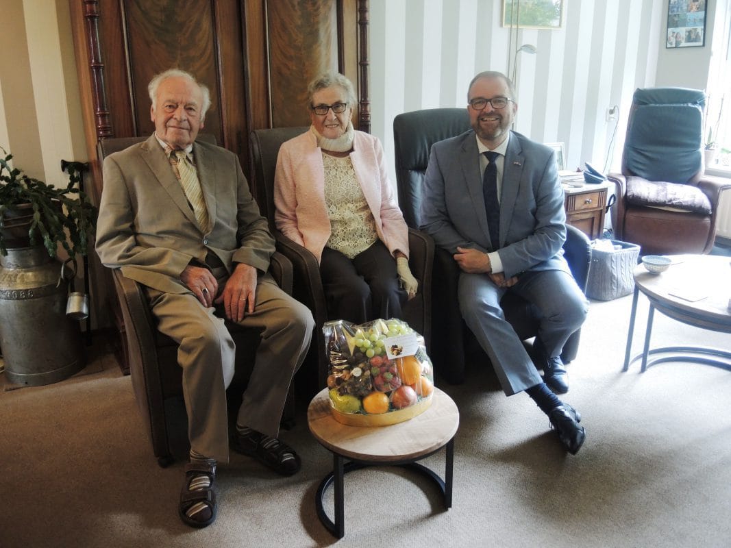 Piershil – Zondag 26 augustus waren de heer en mevrouw De Jong – Vink uit Piershil 60 jaar getrouwd.Burgemeester Servaas Stoop is het bruidspaar maandagmiddag 27 augustus persoonlijk wezen feliciteren met dit diamanten huwelijksjubileum. Namens de gemeente heeft het bruidspaar een mooie fruitmand in ontvangst mogen nemen.