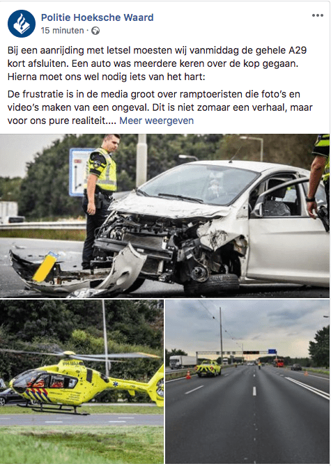 De frustratie is in de media groot over ramptoeristen die foto’s en video’s maken van een ongeval. Dit is niet zomaar een verhaal, maar voor ons pure realiteit.