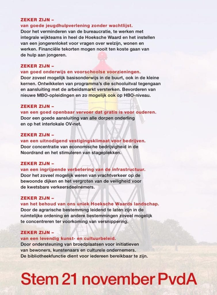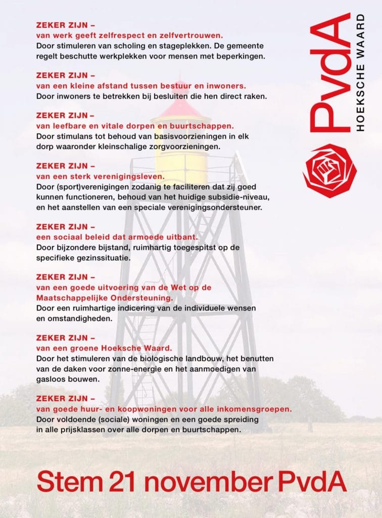 Hieronder de speerpunten van de PvdA Hoeksche Waard