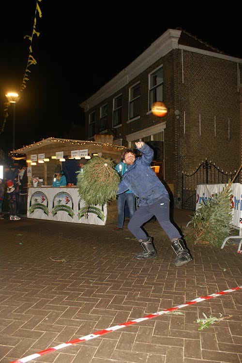 Deelnemers konden bij een vooraf uitgezette baan, met een echte kerstboom proberen om deze zover mogelijk weg te werpen. Mannen en vrouwen van jong tot oud toonden hun krachten, voor de allerkleinsten deelnemers was zelf een minikerstboom beschikbaar. Ook aan de inwendige mens was gedacht, de oliebollen, erwtensoep en warme dranken maakte de sfeer compleet.
