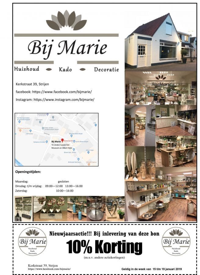 Strijen – Een leuke Nieuwjaarsactie met 10% korting tegen inlevering van deze bon Bij Marie.
