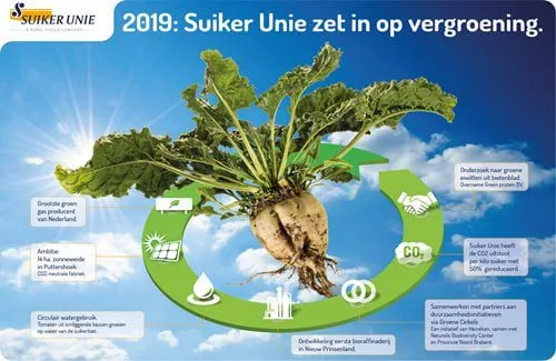 De realisatie van de ZonneWeide past in een lange traditie van duurzaamheid, legt Mesters uit. ‘’Suiker Unie en circulair zijn bijna synoniem. Focus van de 100 boeren die de coöperatie een eeuw geleden oprichtten was: de suikerbiet maximaal verwaarden – en dat is anno 2019 nog steeds zo. Bieten worden tot het laatste blaadje verwerkt: voor medicijnen, bioplastics, voeding en energie. Zelfs zand en klei die meekomt bij het rooien wordt gebruikt voor wegen- en dijken. De eerste bioraffinaderij van Suiker Unie in Nieuw Prinsenland is in ontwikkeling’’, aldus Mesters die met Suiker Unie de komende jaren volop inzet op vergroening, met de ZonneWeide als eerste wapenfeit.