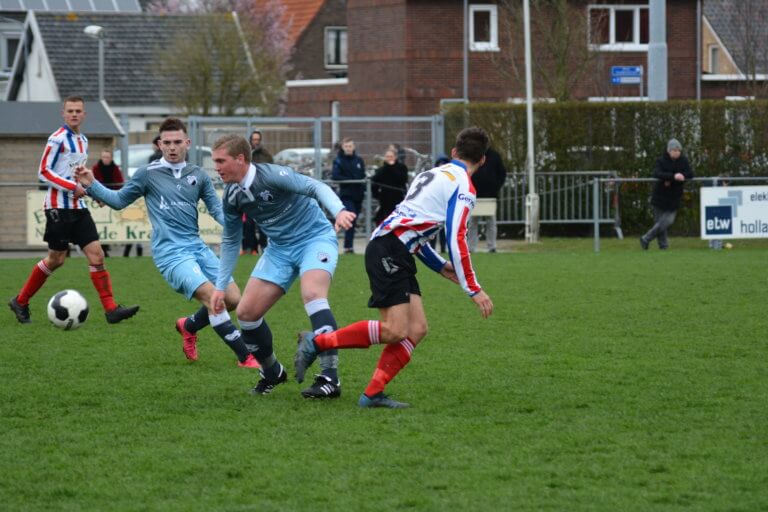 Krabbendijke – NSVV had de laatste twee (thuis)wedstrijden verloren en moest nu naar Krabbendijke, die vorige week de ongenaakbare koploper Oostkapelle had verrast door de drie punten mee naar huis te nemen. Beide teams maakte er een open leuke wedstrijd van, ondanks dat de bal door de harde wind zeer onvoorspelbare capriolen ondernam.