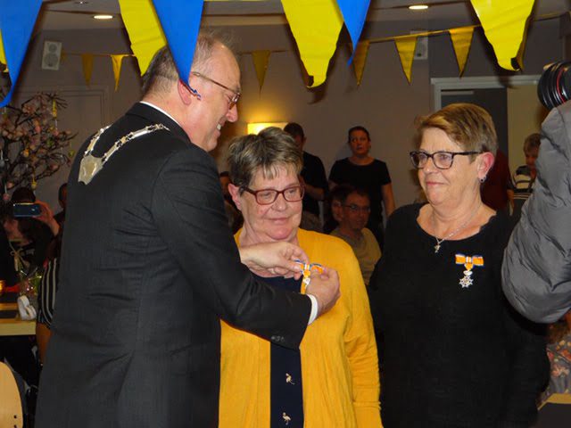 MIJNSHEERENLAND – Woensdagavond 20 maart kregen de tweelingzussen mevrouw M.E. Hazelbag-Nobel en mevrouw M. Ton-Nobel (67 jaar) uit Mijnsheerenland een koninklijke onderscheiding. Beide dames werden benoemd tot Lid in de Orde van Oranje Nassau. Deze tussentijdse uitreiking door burgemeester Peter van der Velden vindt plaats omdat ze beiden 40 jaar lid/vrijwilliger zijn. De onderscheidingen werden uitgereikt in De Pastorije in Mijnsheerenland.