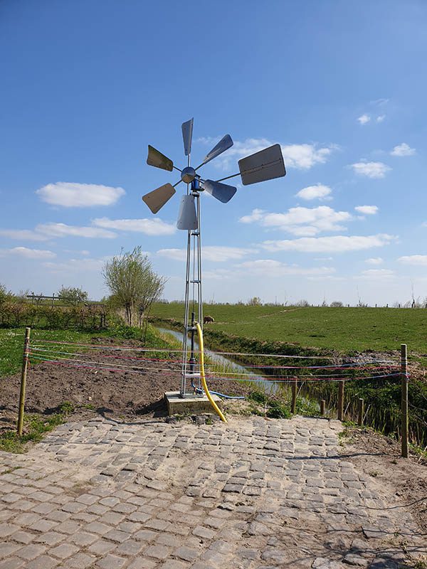 TIENGEMETEN – Bij de Idahoeve op Tiengemeten is vandaag de windwatermolen officieel in gebruik genomen. In het bijzijn van makers en sponsors werd de molen feestelijk onthuld. De windwatermolen is mogelijk gemaakt door een waardecheque die Parnassia Groep gewonnen heeft bij een prijsvraag van Intrakoop, de inkoopcoöperatie van de zorg, over verduurzamen van energie. De molen voorziet de drinkbakken van het vee van vers water.