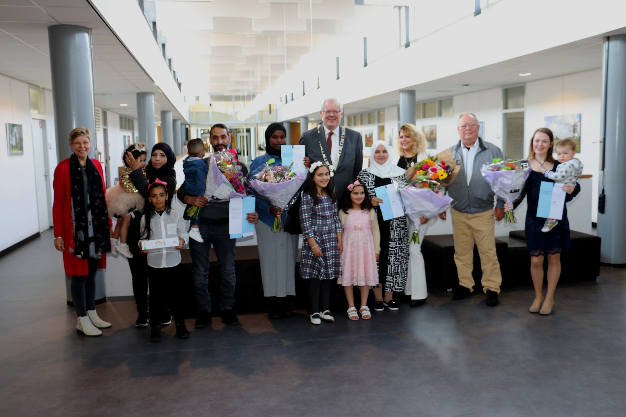 Na de groepsfoto schoof de burgemeester nog gezellig even bij de mensen aan tafel en maakte een praatje. De Hoeksche Waarders die genaturaliseerd werden, komen uit Syrië, Cuba, Somalië en Oekraïne. Met de papieren voor het Nederlanderschap kunnen zij een paspoort aanvragen.