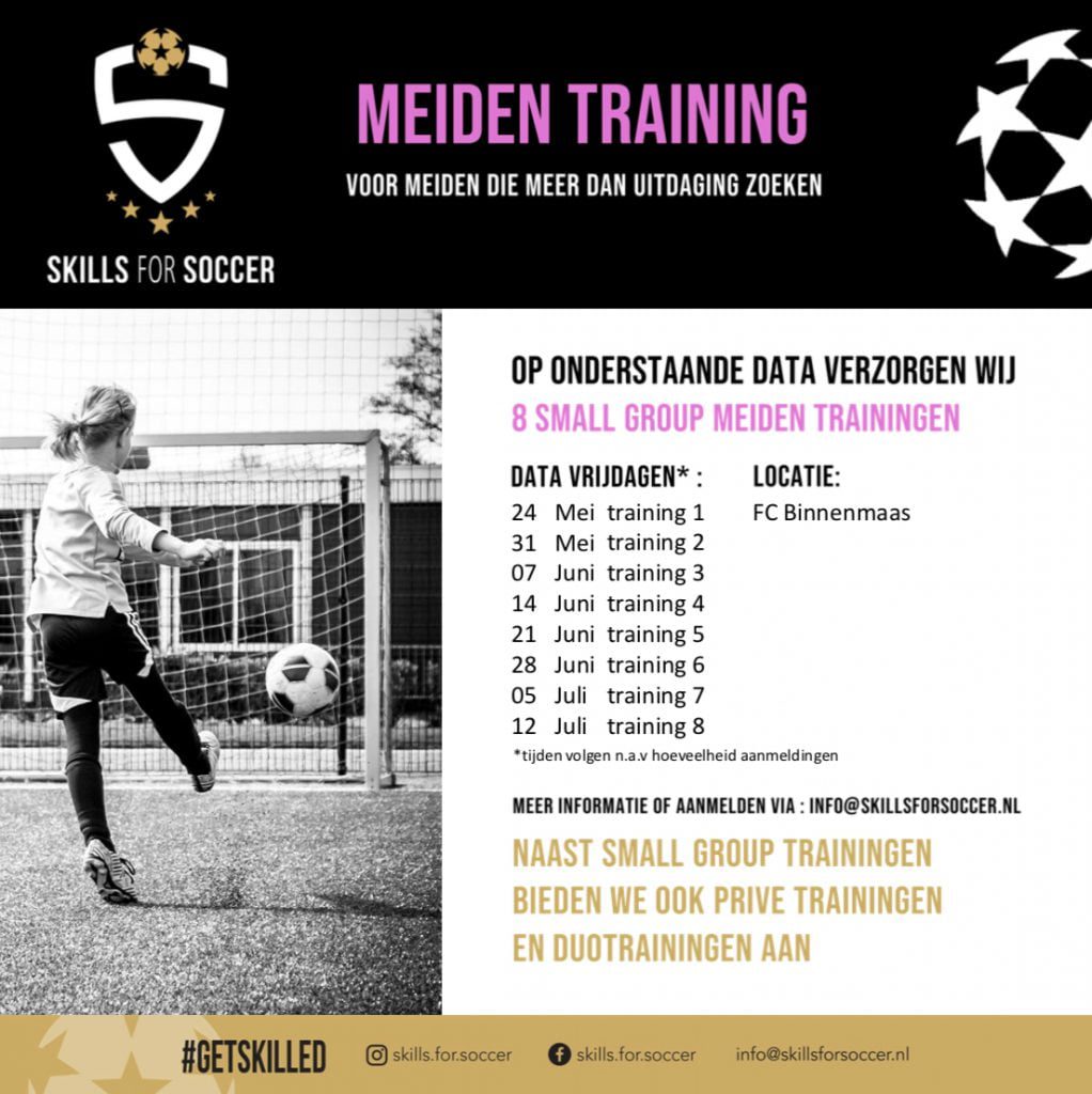 De trainingen zijn voor meisjes en jongens die een extra uitdaging zoeken naast de trainingen bij hun club.Een impressie is zichtbaar via social media op Facebook en Instagram @skills.for.soccer