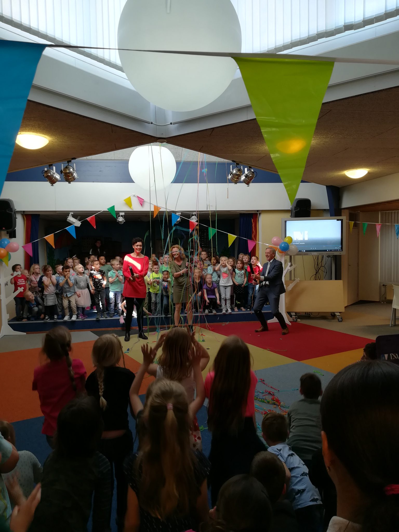 Onder de genodigden waren Luc van Heeren, directeur van Acis, en Cora Labree, directeur van SKOC de Hoeksche School Kinderopvang en Billie de Bever, symbool voor gezonde voeding. Na een woord van beide directeuren werd gezamenlijk het schoollied gezongen, gevolgd door de feestelijke opening met een confettikanon.
