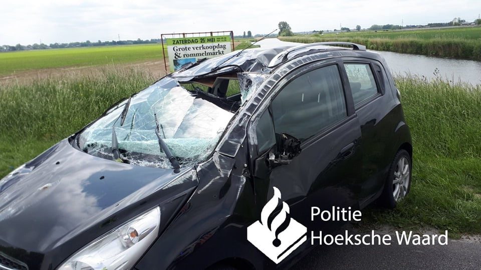 De bestuurder van deze auto had heeeel veel geluk. Na een aanrijding sloeg het voertuig over de kop. Hij kon op eigen kracht uitstappen en na onderzoek in de ambulance bleek hij niets te mankeren liet Politie Hoeksche Waard weten op twitter.