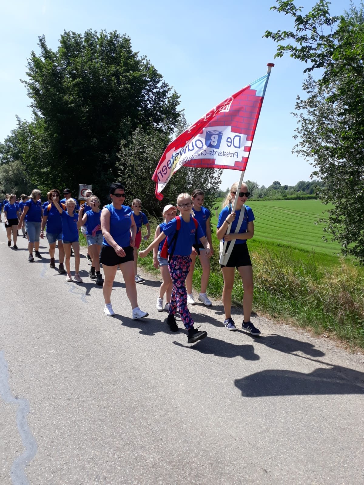 Het was werkelijk fantastisch wandelweer en de kinderen liepen al zingend en kletsend de twaalf kilometer. Het overvaren bij de Binnenmaas is altijd een leuke en welkome onderbreking, evenals de versnaperingen onderweg van de ouderraad.