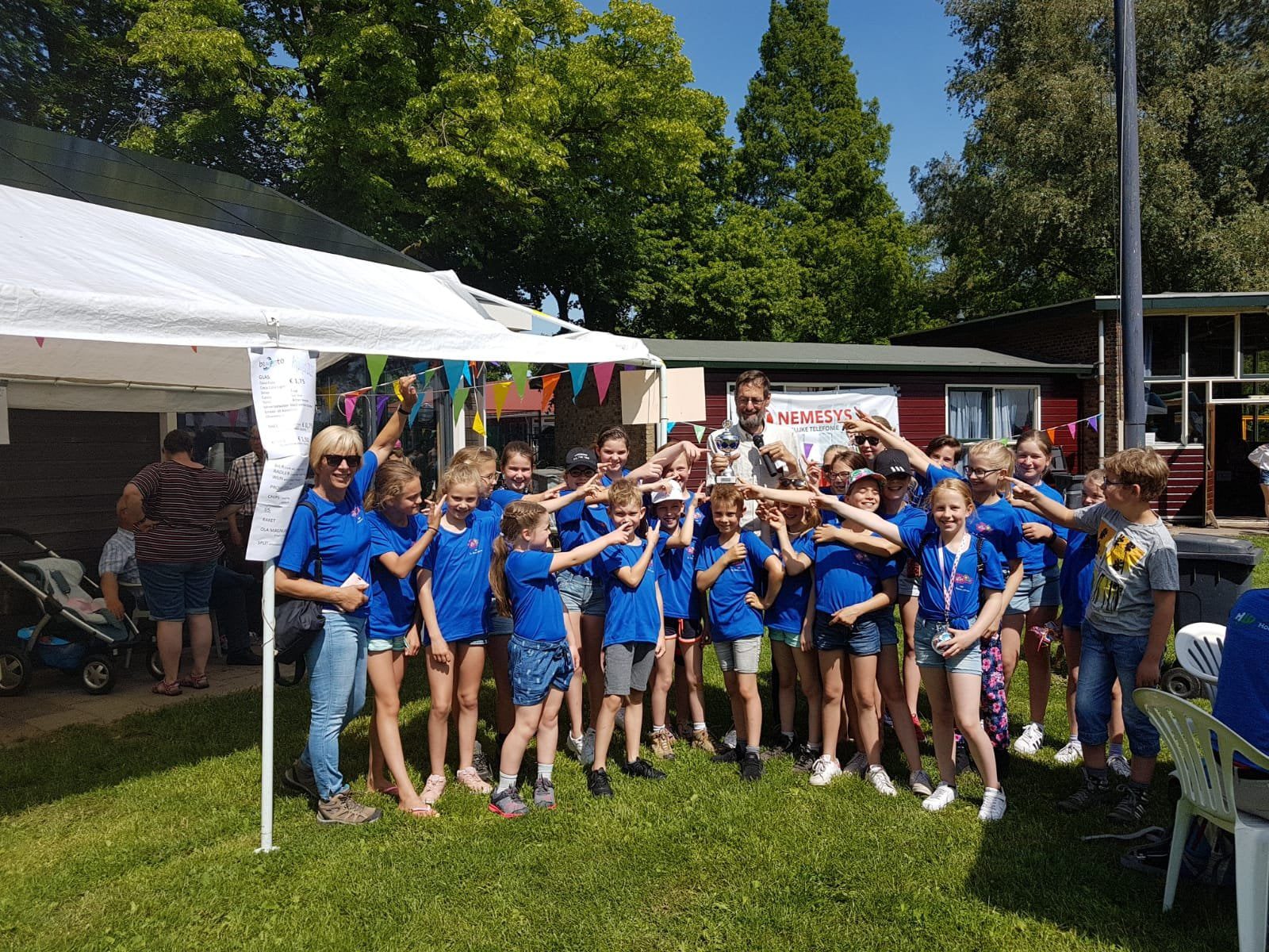 Aan het eind kreeg iedereen een medaille ( of nummertje) en bij de prijsuitreiking was de eerste prijs voor het team van De Bouwsteen!