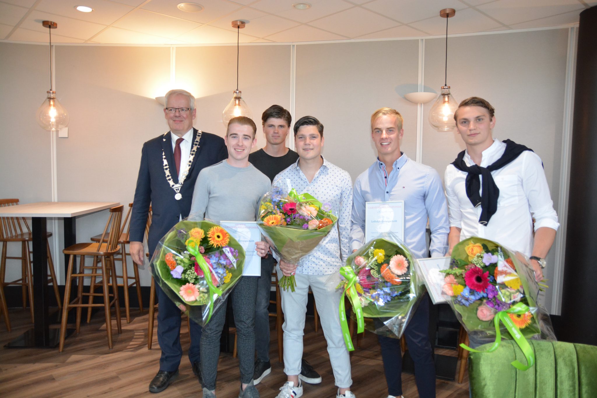 HOEKSCHE WAARD – Donderdag 6 juni reikt burgemeester Govert Veldhuijzen namens Stichting Carnegie Heldenfonds loffelijke getuigschriften en herinneringsgeschenken uit aan de 4 vrienden Lars van der Heiden(19), Maikel den Tuinder (20), Thomas Verbaas (19) en Milan Krab (18). Vorig jaar tijdens hun vakantie op Kos raakte hun vriend Thomas Edelman (20) zeer ernstig gewond door een scooterongeluk. Dankzij het snelle en heldhaftige handelen van zijn vrienden kon Thomas op tijd de juiste medische zorg ontvangen.