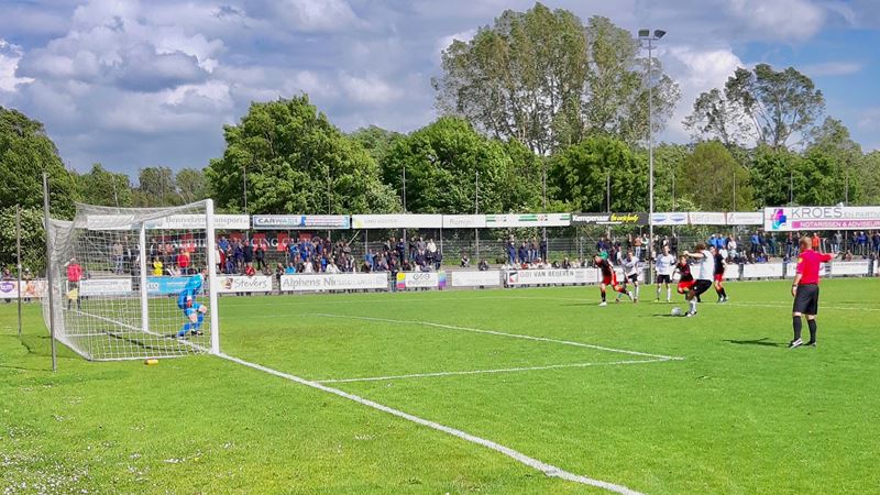 Maar daarmee was de koek nog niet op voor ARC. Na ruim tien minuten kon Coen de Groot richting SHO-doel en schoof beheerst de 3-0 achter Konings. Zo was al snel duidelijk dat de wit/zwarten ook volgend seizoen eerste klasser zouden zijn. Met de ruime voorsprong hoefde ARC zich weinig zorgen meer te maken en pas vijf minuten voor de rust was er een mogelijkheid voor SHO. Jeroen Kokje goochelde zich door de verdediging maar zijn schot verdween naast het doel waarin zijn vader Fred halverwege de jaren tachtig wél wist te scoren en die treffer was vergelijkbaar met het doelpunt van Samsom eerder in de wedstrijd.