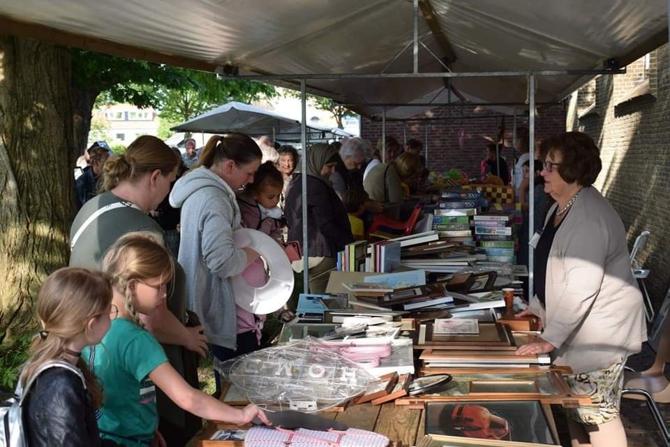 Nieuw-Beijerland – Lange rijen wachtenden voor de toegangspoort tot het terrein van de N.H. Kerk in Nieuw-Beijerland. Op Vrijdagavond 14 juni en zaterdagochtend 15 juni van 9.30 uur tot 13.00 uur is daar weer de jaarlijkse rommelmarkt.