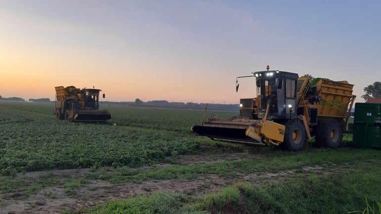 Roks doet er nu ‘maar’ vier uur over om een hectare te oogsten. Het blok waar Roks nu aan werkt is tien hectaren groot. De machine rijdt ongeveer een kilometer per uur. “Het moet ook heel langzaam, er hangen heel veel bonen aan. Het is alleen maar gunstig dat we niet zo hard kunnen.”