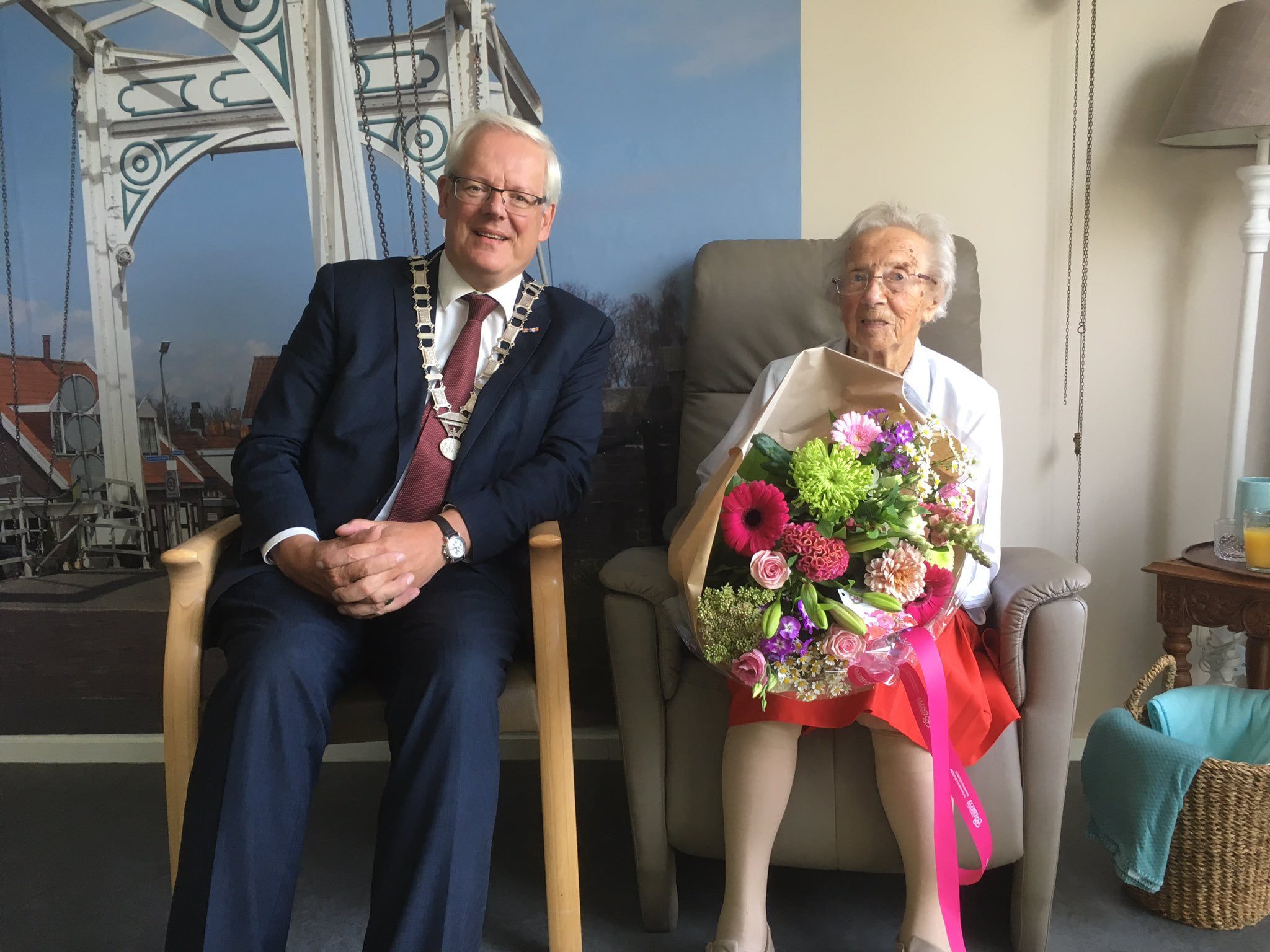 STRIJEN – Vandaag bereikte mevrouw J. (Coby) Trouwborst-Barendrecht uit Strijen de respectabele leeftijd van 102 jaar. Zij was aangenaam verrast door het felicitatiebezoek van burgemeester Govert Veldhuijzen. De jarige woont in woonzorgcomplex De Hoge Weide.