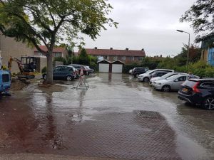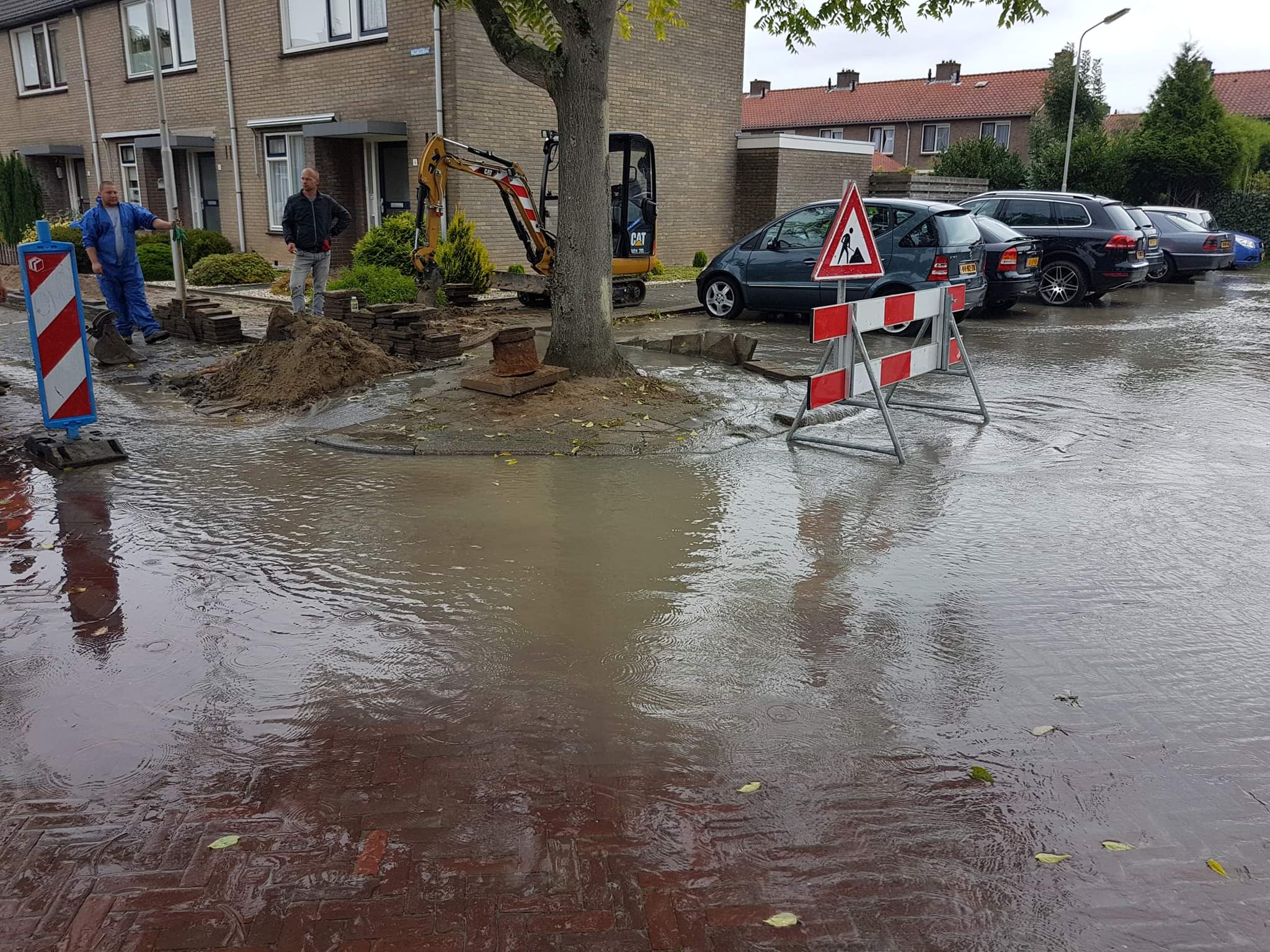 Numansdorp – Aan de Nassaustraat in Numansdorp is door werkzaamheden op woensdagmorgen 11 september een waterlekkage ontstaan en staat de straat blank.