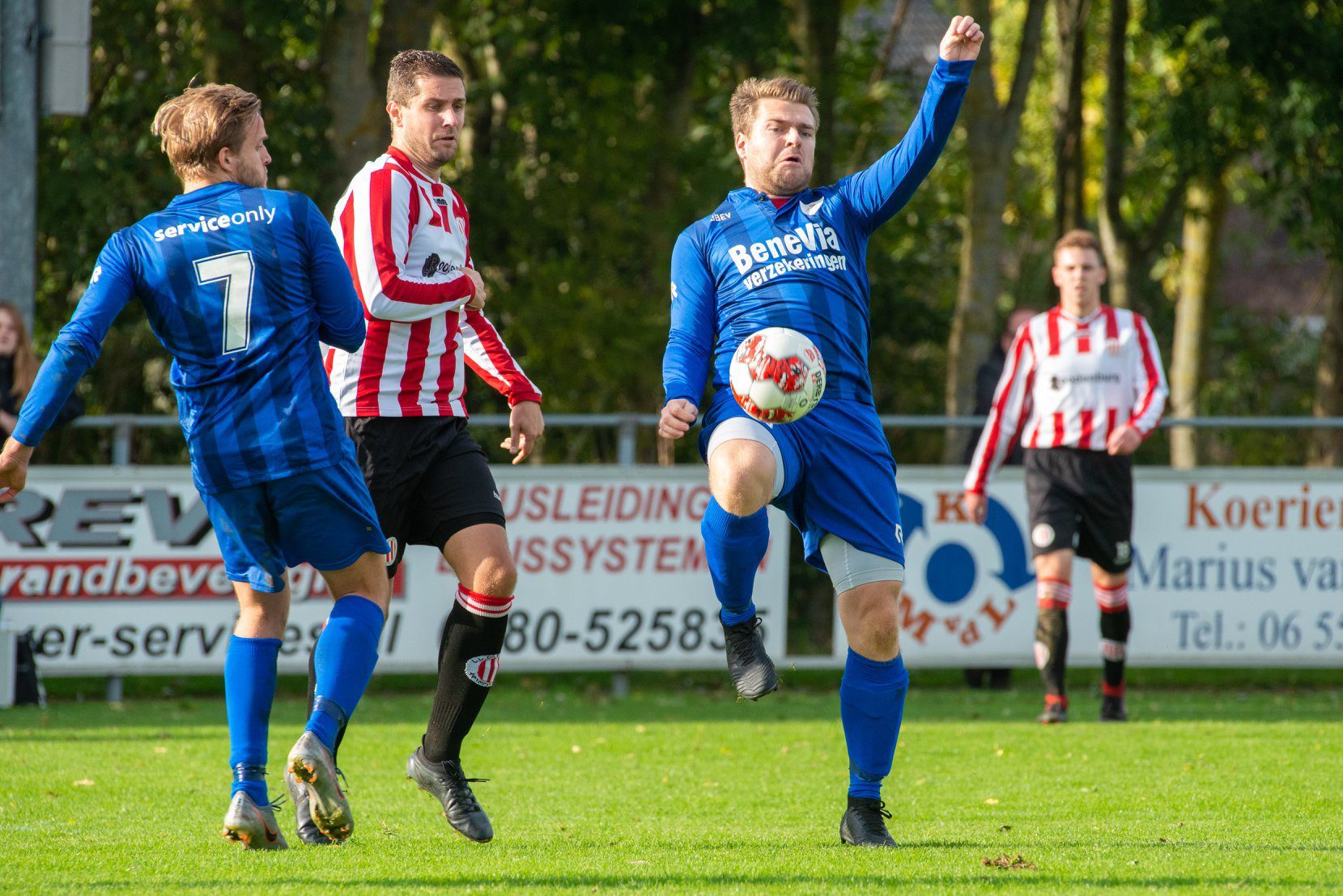 Krimpen aan de Lek – Ondanks dat de toeschouwers acht doelpunten voorgeschoteld kregen was de wedstrijd niet echt hoogstaand. Beide ploegen leden veelvuldig balverlies en het zag er rommelig uit. Zodoende gebeurde er niet echt veel.