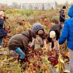 MOOKHOEK – Op vrijdag 1 november lieten de leerlingen van OBS het Talent in Mookhoek zich niet weerhouden door de regen om eens stevig aan de slag te gaan in de pluktuin aldaar. De klassen liepen over de Strijensedijk naar de bloementuin die winterklaar gemaakt moest worden.