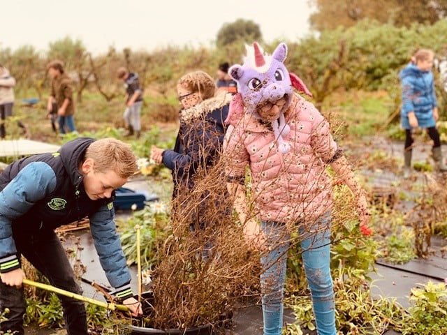 MOOKHOEK – Op vrijdag 1 november lieten de leerlingen van OBS het Talent in Mookhoek zich niet weerhouden door de regen om eens stevig aan de slag te gaan in de pluktuin aldaar. De klassen liepen over de Strijensedijk naar de bloementuin die winterklaar gemaakt moest worden.