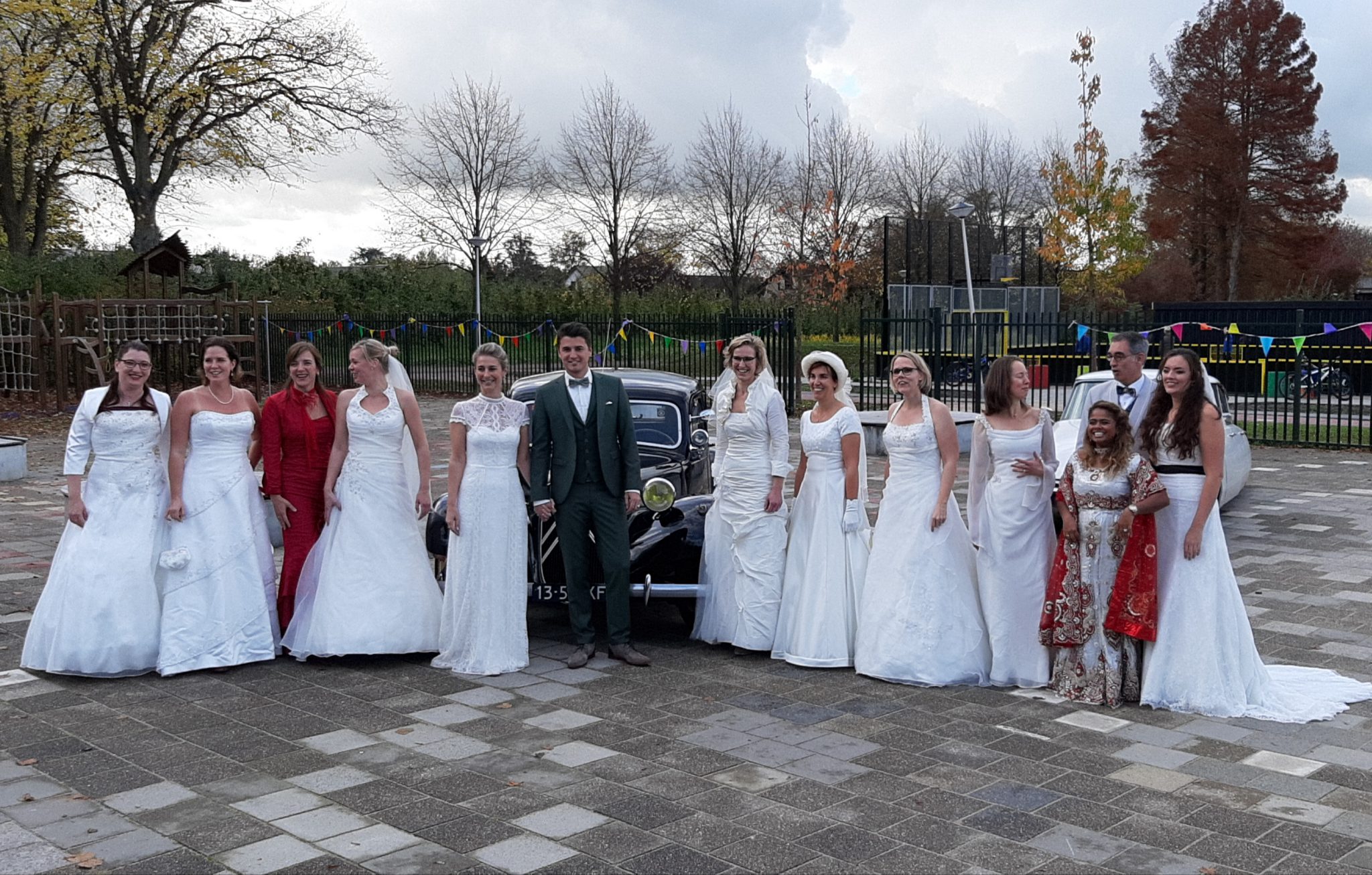 Er werd afgesloten met een gezellig hapje en drankje, want ook dat hoort bij een trouwerij. Aan het einde van de ochtend mochten alle papa’s, mama’s, opa’s, oma’s en andere belangstellenden een kijkje nemen in de school en natuurlijk ook even de jurk van juf Sanneke bewonderen. Op het plein stonden prachtige trouwauto’s waar de kinderen tot slot nog even op de foto konden gaan.