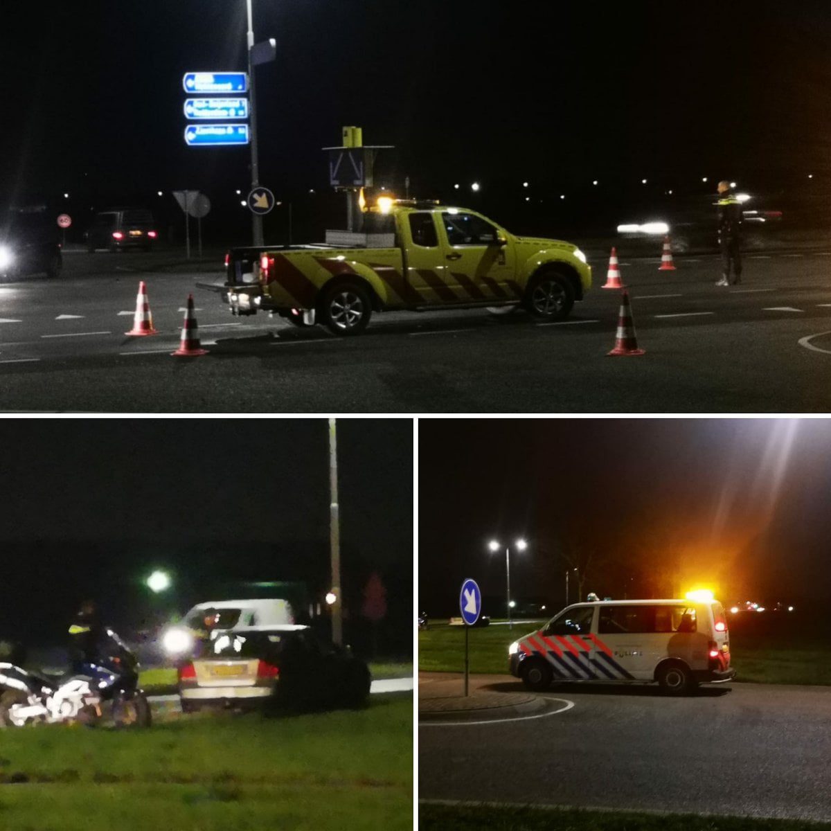 De bestuurder van de motor is voor onderzoek met onbekende verwondingen overgebracht naar het ziekenhuis.