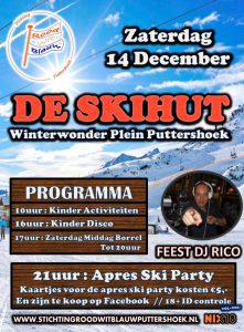 Klets bij met vrienden met een chocomel of glühwein of ga uit je dak in de skihut van de nieuwe Oranjevereniging Stichting Rood Wit Blauw Puttershoek, die tot de late uurtjes geopend is met DJ Ricardo.