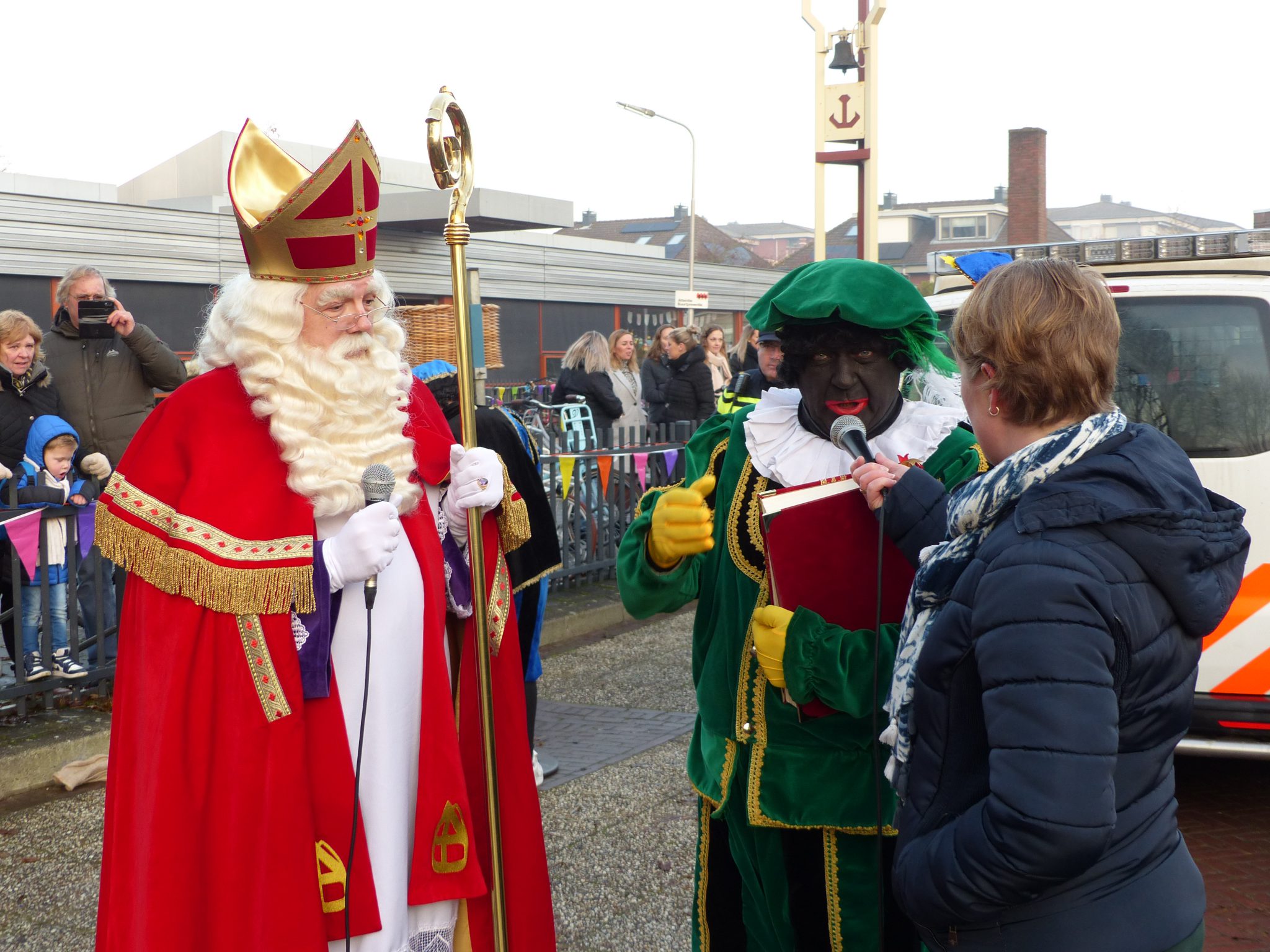 Gelukkig maar. Zijn zwarte pieten waren hem al voorgegaan en hadden heel veel speeltoestellen en speel materiaal meegenomen.Vorig jaar kregen alle kinderen een stappenteller om met elkaar een record aan stappen te zetten. Die stappen werden gesponsord voor nieuwe speeltoestellen op het plein. Toen de pieten pas geleden eens op school kwamen neuzen, hebben ze niet verder gekeken dan hun neus lang was en ze zagen de prachtige toestellen over het hoofd. Vandaar dat ze nu veel speelmateriaal hadden meegenomen. Dat kon weer retour.