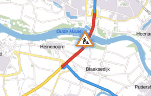 De A29 is dicht tussen toerit Oud-Beijerland en afrit Barendrecht in de richting van Rotterdam. Het verkeer vanuit de Hoeksche Waard wordt lokaal omgeleid via de N217 en de A16. Verkeer vanuit Zierikzee /. Bergen op Zoom wordt grootschalig omgeleid via de A59, A17 en A16.