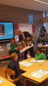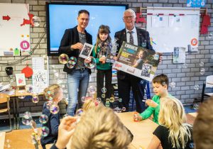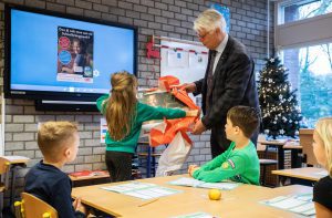 Wethouder Piet van Leenen bracht daarom maandag 16 december een bezoekje aan de klas van Bien: groep vier van OBS Het Driespan. Hij overhandigde Bien de prijs: een cheque ter waarde van € 250,- die haar school mag besteden aan verkeerslessen en verkeersveiligheid. Voor alle kinderen uit de klas nam hij een bellenblaas mee.