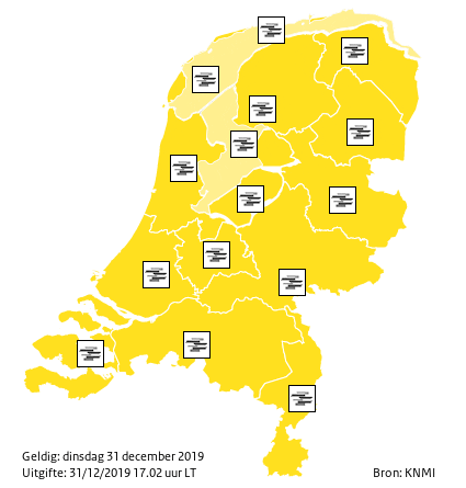 Vanaf de jaarwisseling kan als gevolg van vuurwerk ook zeer dichte mist ontstaan met een zicht van minder dan 50 meter. Zeer lokaal kan het zicht teruglopen tot ca. 10 meter.