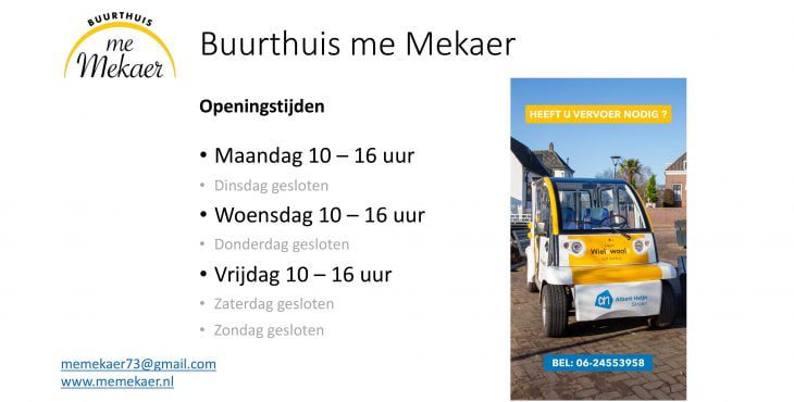 Het buurthuis gaat open op maandag, woensdag en vrijdag van 10-16 uur.