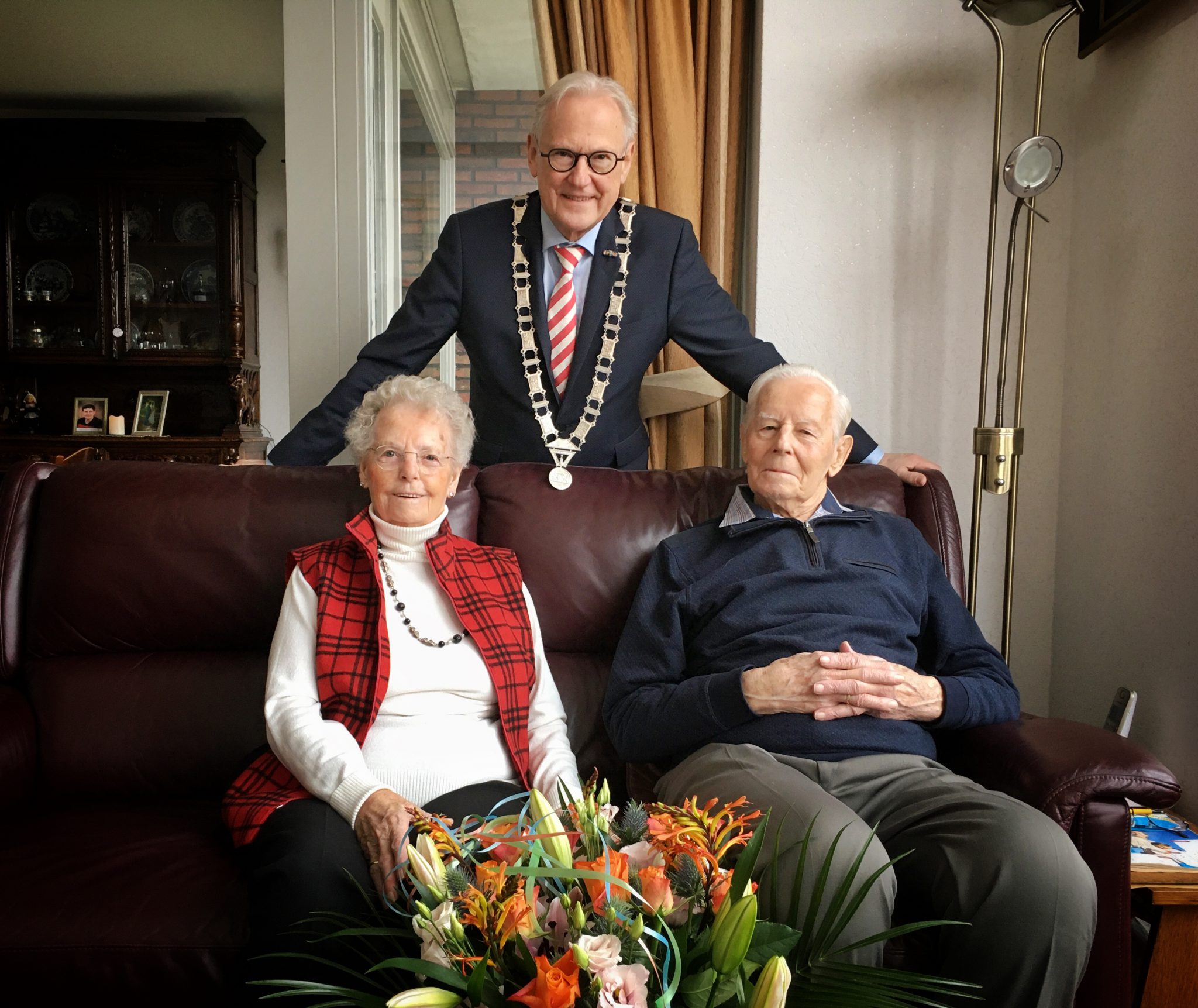 Numansdorp – Maandag 3 februari was het feest in Numansdorp! Daar vierden de inmiddels 88-jarige Jo Vogelaar en zijn 87-jarige echtgenote Ans Vogelaar-van Heemskerk hun 65e huwelijksdag. Burgemeester Jan Pieter Lokker bezocht het jubilerendestel. Hij bracht namens het gemeentebestuur de felicitaties over met een bos bloemen.