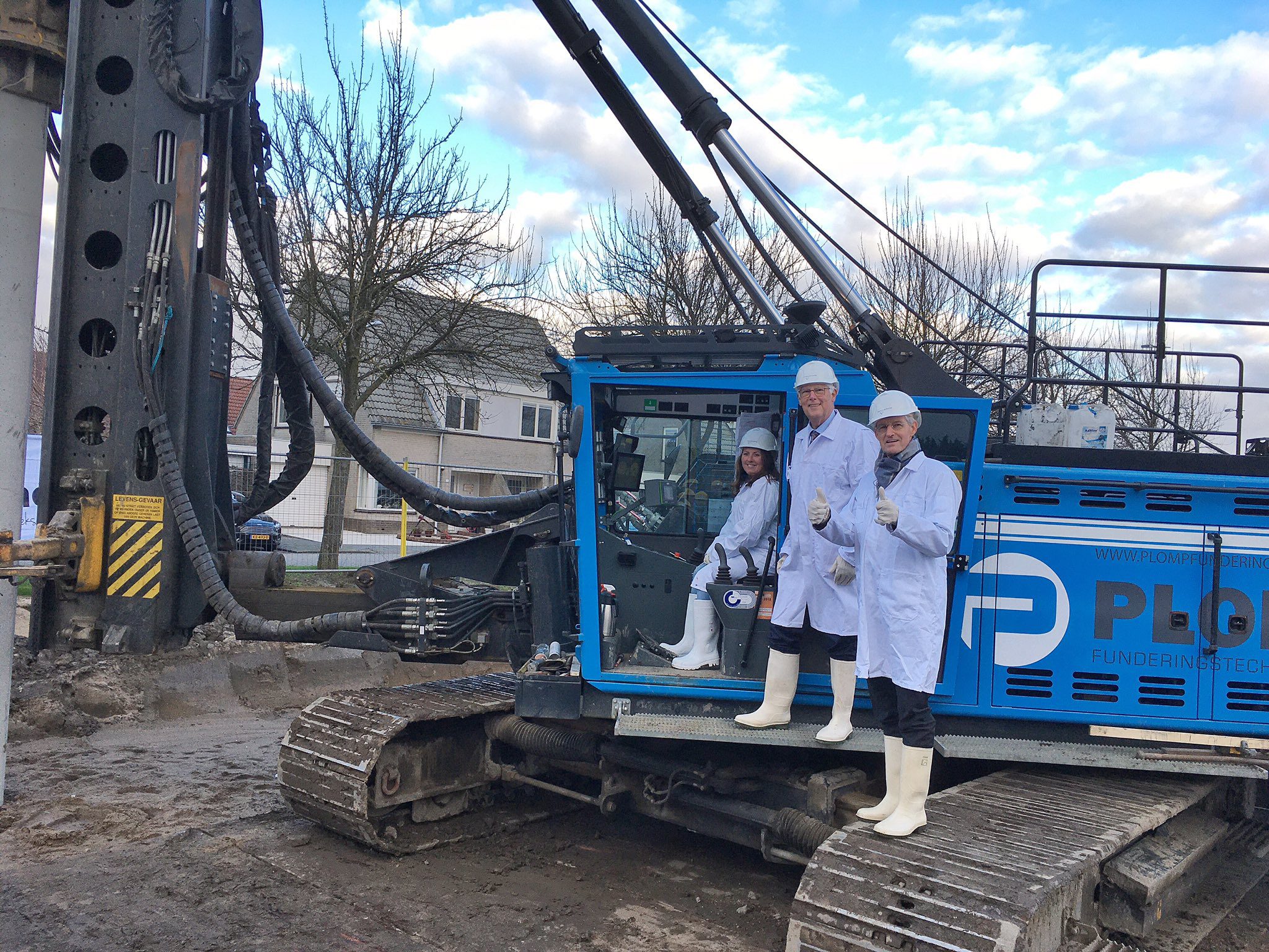 Vandaag, woensdag 5 februari, werd de eerste paal van de nieuwbouw geslagen. Toekomstig bewoner mevrouw Winkel is erbij en is er trots op dat zij straks de sleutels van een energieneutrale woning in ontvangst neemt. Mevrouw Winkel: ‘Ik vind het heel belangrijk dat we bewuster met het milieu omgaan. De manier waarop je leeft is vaak een gewoonte geworden. Dat wil ik voor mij en mijn kinderen anders. Als je wilt, kun je veel dingen prima anders doen.’