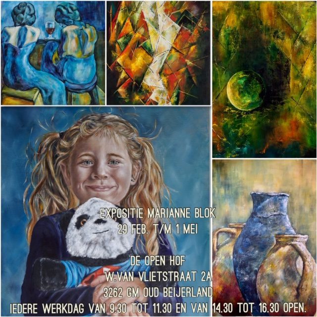 Oud-Beijerland – Vanaf 29 Februari t/m 1 Mei exposeert Marianne Blok met haar schilderijen in “de Open Hof” in Oud Beijerland.