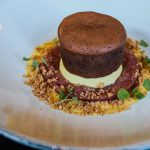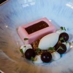 - Savarin van witte chocolade en aardbei, hangop, karamel, chocolade ganache en yoghurt limoen ijs.