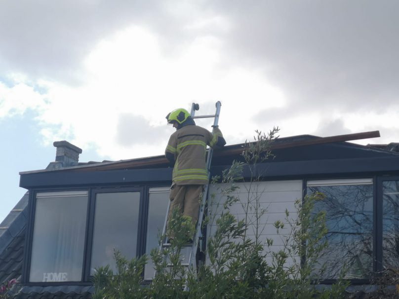 De brandweer van Strijen kwam ter plaatse om verdere schade te voorkomen en het dak tijdelijk te maken tot dat er een dakdekker komt om de dakbedekking te vernieuwen