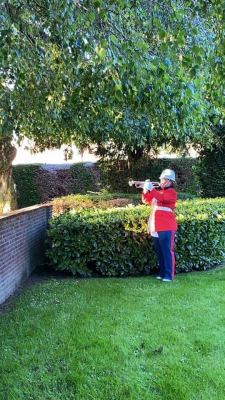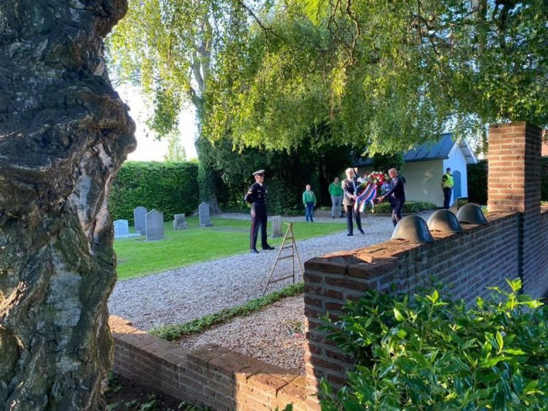 Heel bijzonder om zonder betrokken inwoners in een klein comité de kranslegging te verrichten. Na de centrale toespraak over de radio van burgemeester Bram Van Hemmen, de 2 minuten stilte en het zingen van het Wilhelmus legden Johan Tuk, voorzitter van de Oranjevereniging en wethouder van Leenen de krans van de Gemeente icm de Oranjevereniging.