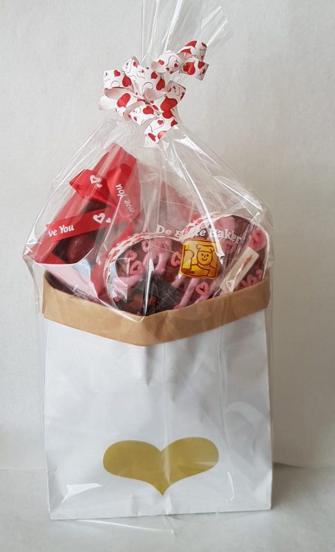 - Moederdag paperbag gevuld met: red velvet hartje, 2 harten kwark bolletjes, 1 harten eierkoek, doosje 200 gram Moederdag chocolade voor € 15,95