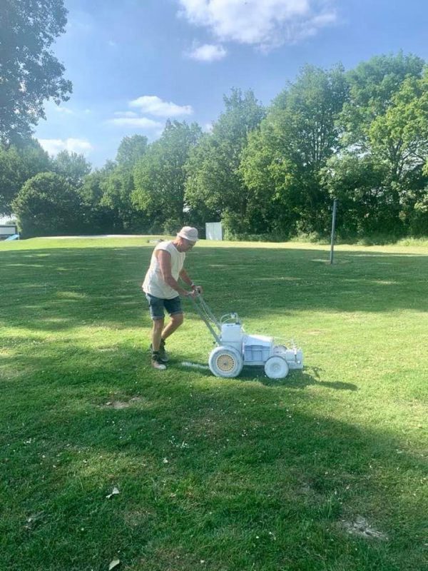 Om dit makkelijker te maken, kwam een aantal leden van de werkgroep Hitsertse Kade met het idee om cirkels in het gras te maken met een doorsnee van 3 meter (en op een afstand van 2 meter).Op die manier is het voor bezoekers eenvoudiger zich aan de afstandsrichtlijnen te houden.
