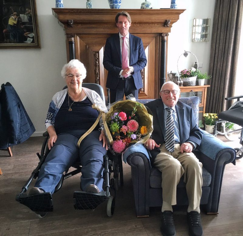 Wethouder Paul Boogaard bracht het diamanten bruidspaar een felicitatiebezoek en verraste hen met een mooie bos bloemen namens de gemeente Hoeksche Waard.