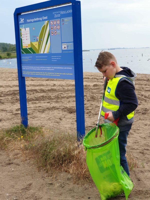 Numansdorp – Mickie Vingerling houdt het strandje in Numansdorp schoon. Hij vindt dat belangrijk omdat de beesten er anders dood aan gaan. Mickie kreeg vandaag van RAD Hoeksche Waard een schoonmaakheld pakket.
