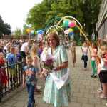 Een grootschalige receptie zat er niet in, maar collega’s hadden iets anders op touw gezet: samen met haar man maakte ze een fietstocht door het dorp en op verschillende punten stonden kinderen en ouders die haar iets cadeau gaven en een deel van een lied zongen. Langs de kreek stonden veel voormalig collega’s en oud-leerlingen om haar uit te zwaaien en iets toe te wensen. Bij terugkomst op school was er een lunch en gezellig samenzijn met collega’s en naaste familie en werd ze namens CSG De Waard bedankt voor al die jaren collega zijn en ook lid van de GMR.