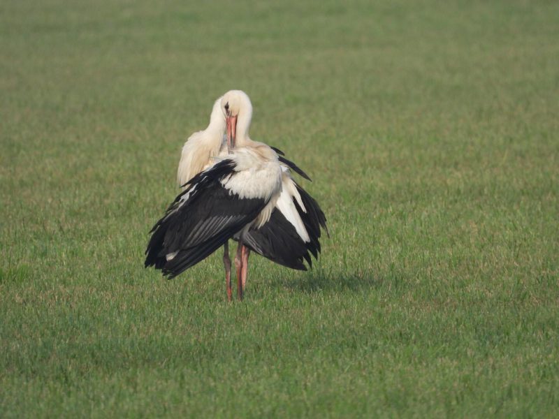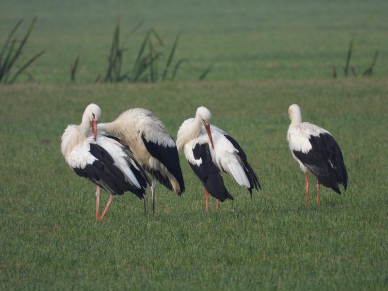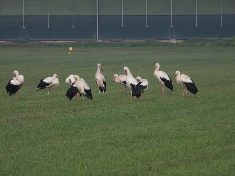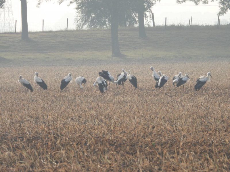 Strijen – Een groot aantal Ooievaars doen vandaag Strijen aan na een zware regenbui die gisteravond viel. Na het poetswerk zullen ze in de loop van de dag wel weer vertrekken.