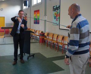 Dit kalenderjaar lopen er voor het laatst scholieren door de gangen. Het Actief College verhuist namelijk naar een nieuwe locatie in Poortwijk. Directeur Rianne Koole vertelde de aanwezigen het een en ander over de verhuizing en over de geschiedenis van het techniekonderwijs in de Hoeksche Waard. Gemeente Hoeksche Waard wil het markante oude schoolgebouw graag behouden. Welke functie het krijgt is nog niet bekend. De wethouder kreeg van Pieter Jan in ’t Veld van de Historische Vereniging Oud-Beijerland ook nog, geheel coronaproof met een hengel, een usb stick overhandigd. Hierop staan foto’s en informatie van 25 monumenten in Oud-Beijerland. Na het officiële gedeelte werden de genodigden rondgeleid door het gebouw door enthousiaste leerlingen van het Actief College.