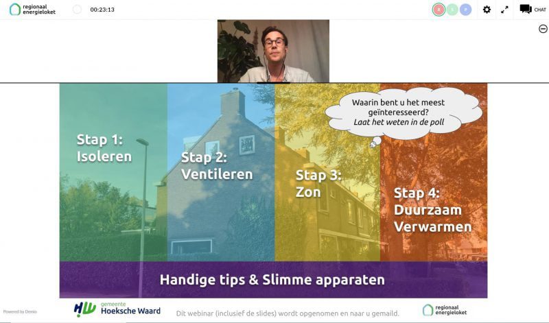 Op woensdag 7 oktober namen inwoners uit Westmaas en Klaaswaal deel aan een online webinar over het verduurzamen van hun woning. Het webinar is een initiatief van gemeente Hoeksche Waard en het Regionaal Energieloket. Beide partijen informeerden de deelnemers over de mogelijkheden die er zijn om woningen in logische stappen te verduurzamen.