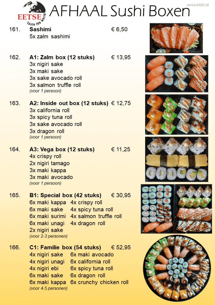 Afhalen kan vanaf 16:00 uur tot 20:30 uur, graag even uw bestelling doorbellen naar 0186-683911. U kunt ons vinden op de Rijksstraatweg 30 3286 LS Klaaswaal.
