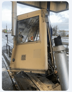 Op 28 oktober jl. heeft er een ongeval plaatsgevonden op ons tolplein. Bij dit ongeval is er een cabine van zijn sokkel gereden. Hierdoor zijn we direct op zoek gegaan naar een hogere aanrijbeveiliging om ons personeel beter te beschermen en dit wordt meegenomen in het groot onderhoud.