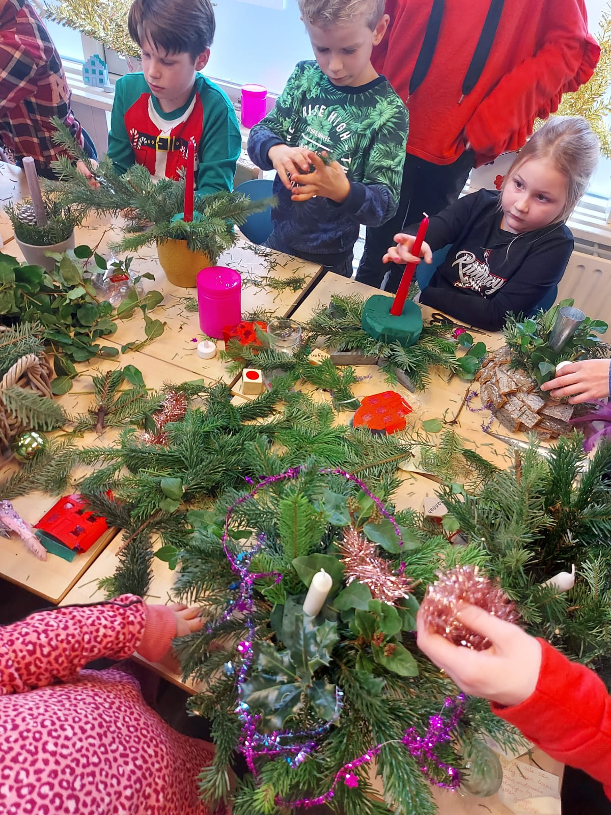 Om deze eerste periode voor de kerstvakantie (en uiteindelijk de lockdown) af te sluiten, maakten de kinderen gezamenlijk prachtige kerststukjes. De kerstvakantie is nu begonnen en na de vakantie tot tenminste 19 januari krijgen de leerlingen weer digitaal onderwijs vanuit huis.