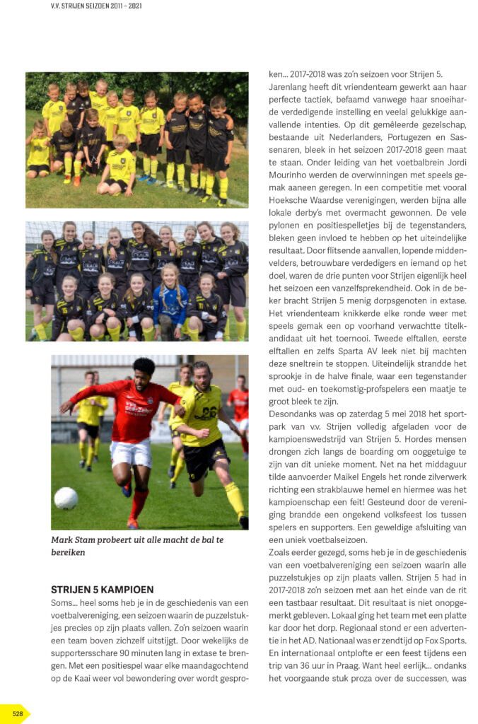In het boek vooral veel foto’s uit de historie van v.v. Strijen. Iedereen die ooit actief is geweest voor v.v. Strijen heeft grote kans zichzelf op beeld terug te vinden in het boek. Als voorproefje ziet u bijgaand alvast 2 pagina’s uit verschillende tijdsblokken.